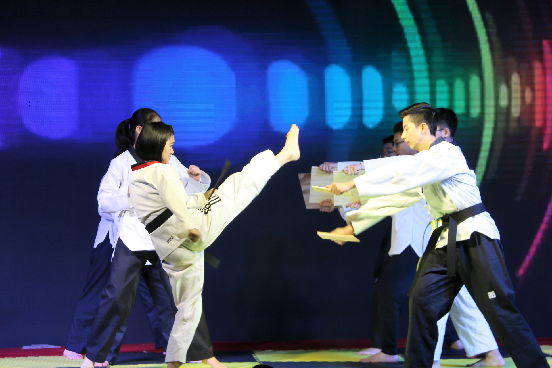 12月28日晚,第二届校园文化艺术节闭幕式暨2018年元旦晚会在天健馆隆重举行。学校所有行政人员、部分教师、高一、高二和艺体部全体同学及部分家长代表观看晚会。